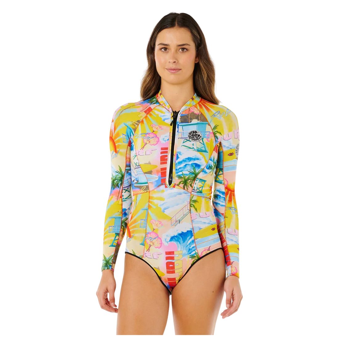 Bring a splash of colour to the beach! This high-performance wetty offers 1.5 mm E5 neoprene, unsealed seams, and E-stitched construction for durability and flexibility. The back zip closure and yardage print panels add style and functionality.